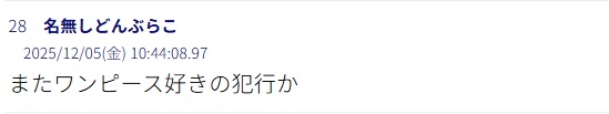 2022年~2023年に起きた広域強盗事件では指示役の一人がワンピースのキャラクター「ルフィ」と名乗ったことから、今回の事件でもワンピースを連想する人が多いです。