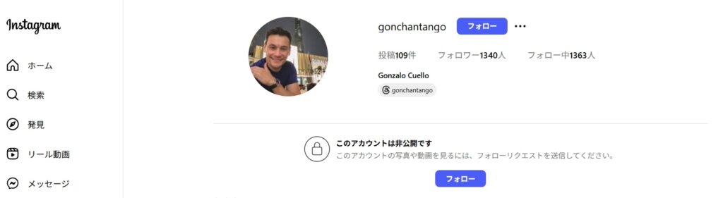 インスタアカウント名は、gonchantango(ゴンちゃんタンゴ)ですし、さらに「Gonzalo Cuello」とゴンサロ・クエッショさんの本名が記載されています。