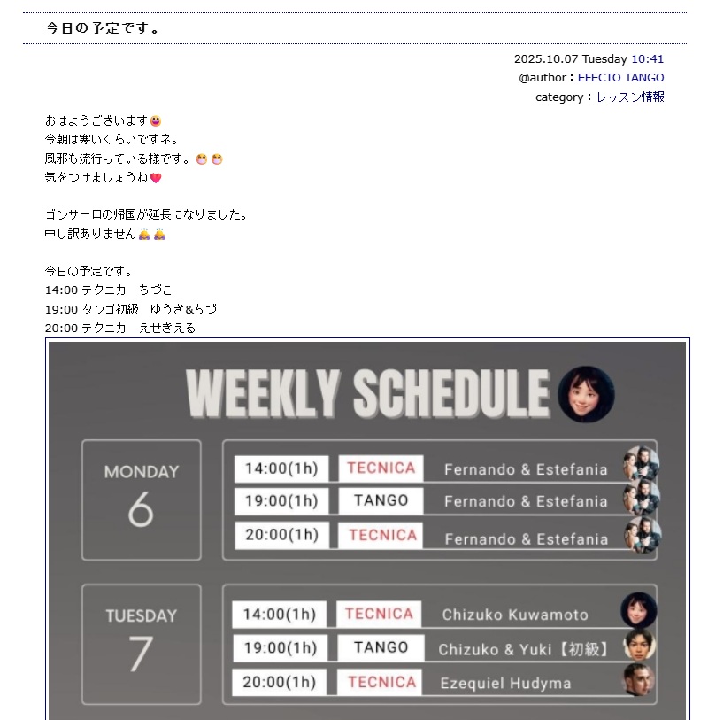 - 活動拠点:日本(東京都・高田馬場「Efecto Tango Studio」など)およびアルゼンチンを往来