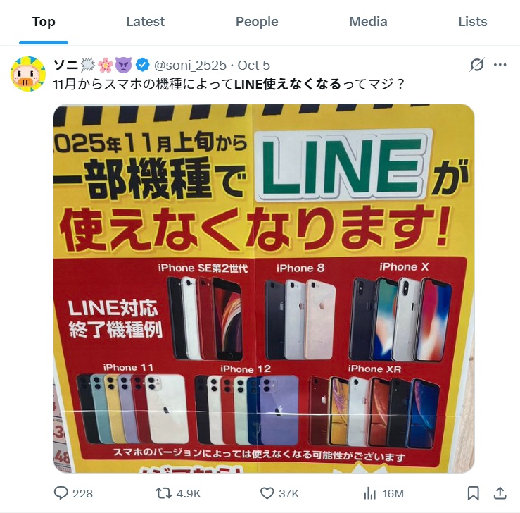 LINEはセキュリティ強化のため古いOSのサポートを順次終了しており、
