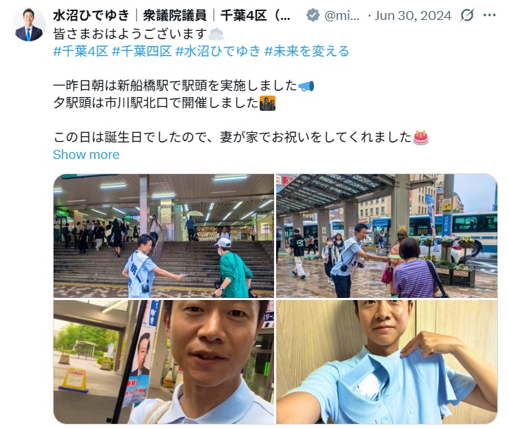 — 水沼ひでゆき|衆議院議員|千葉4区(船橋市・市川市) (@mizunuma_) August 5, 2024