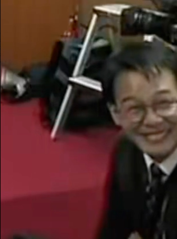 カメラマンなど報道陣が高市さんを貶める発言をした画像に映り込んでいた丸メガネの男性です。